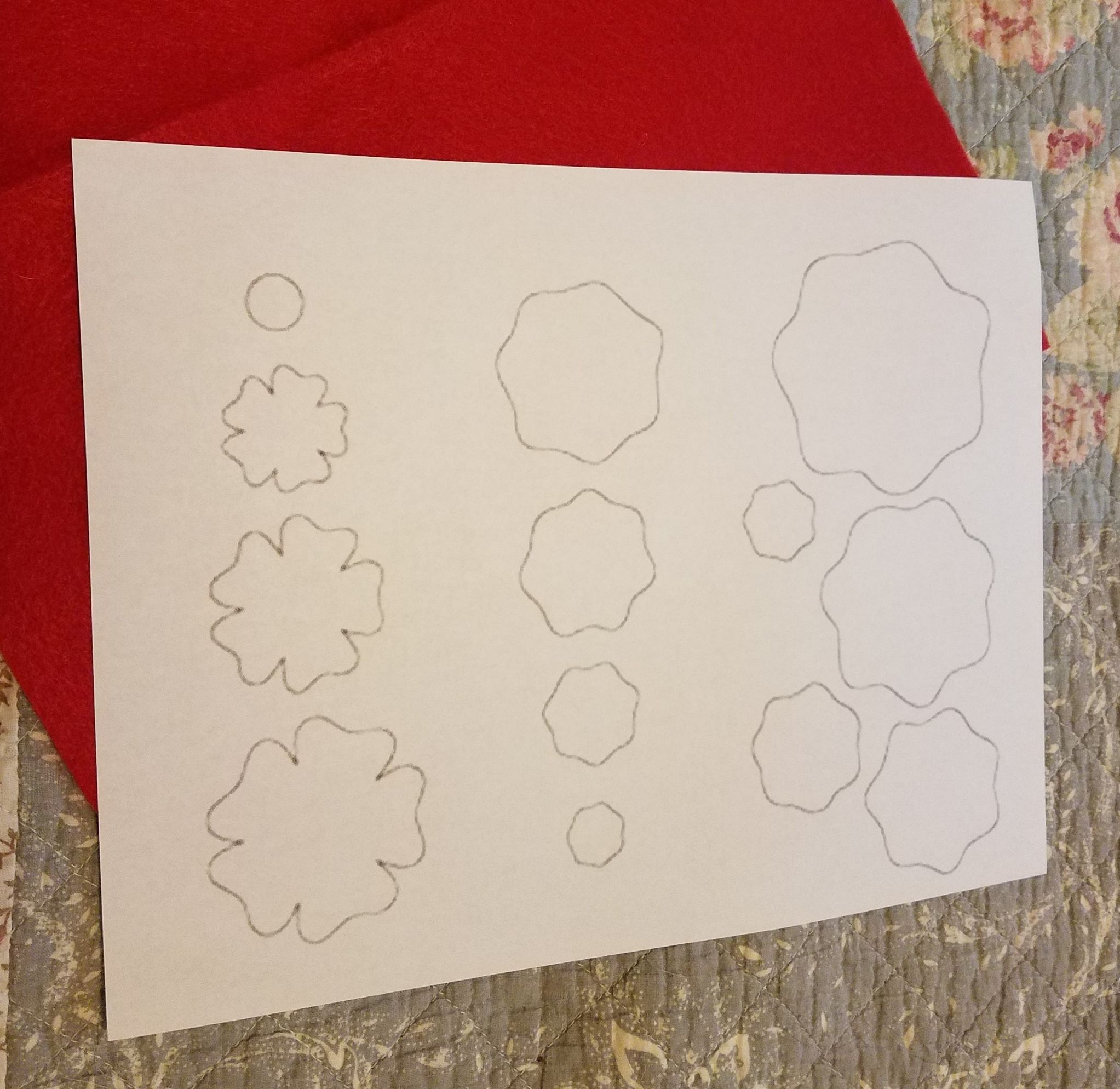 Pin each to your red felt and cut out the shapes. Remove the pins and paper templates from the felt and discard or save to make more poppies.